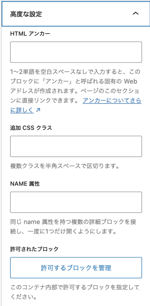 折りたたみの挙動もHTMLを使っているので、特段WP独自のJSやCSSがある訳じゃないです。